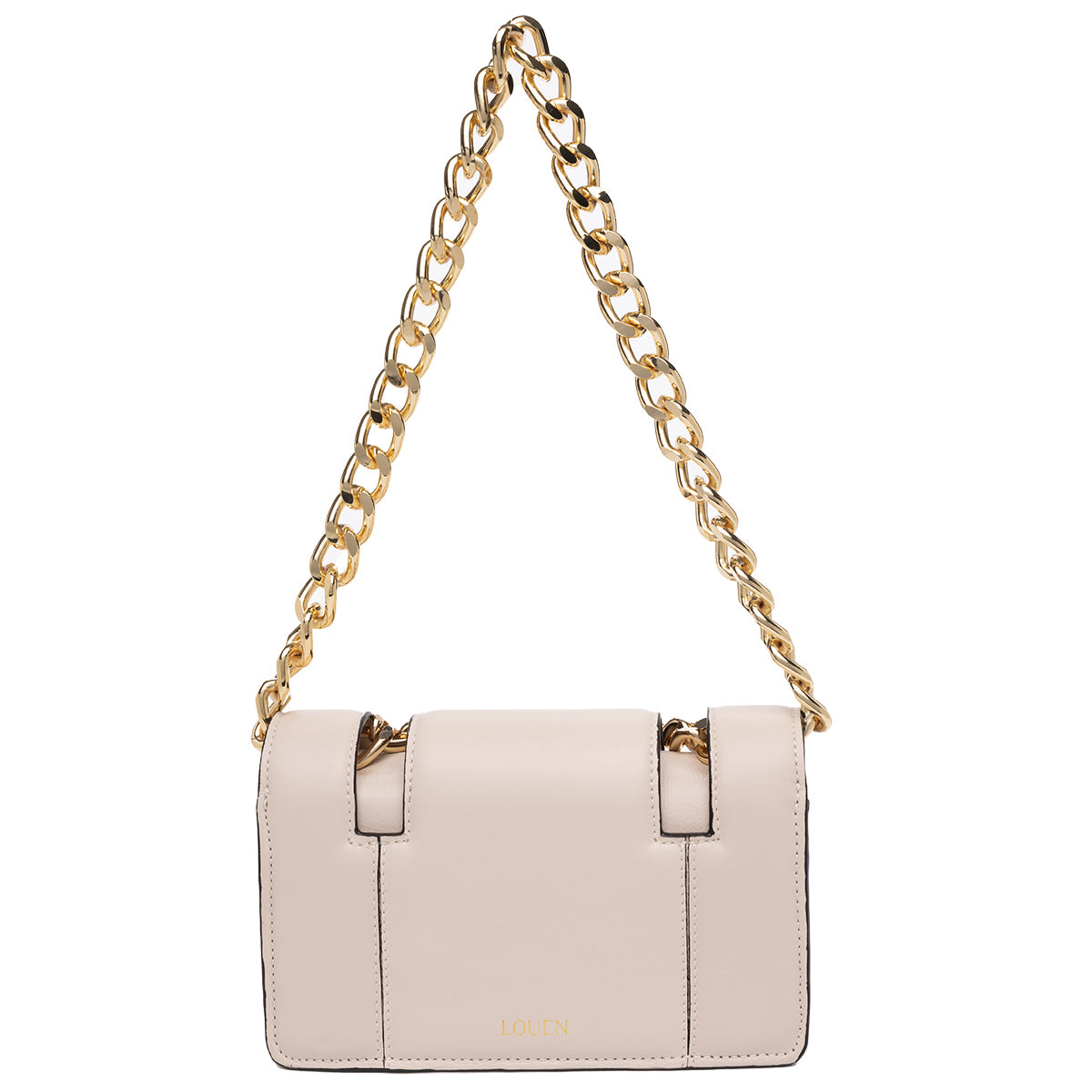A nossa Baguete Amara, traz em seu design o charmoso L, símbolo da nossa marca. Seu formato reduzido traz personalidade, tornando-a uma bolsa ideal para momentos especiais. Esta sofisticada baguete, foi pensada para você transportar seu celular e algum outro item indispensável. A Baguete Amara tem uma nobre alça de corrente dourada, contornos arredondados e o charmoso fecho personalizado da Louen. Compõe nobremente o seu look e vai te acompanhar em seus eventos elegantes.