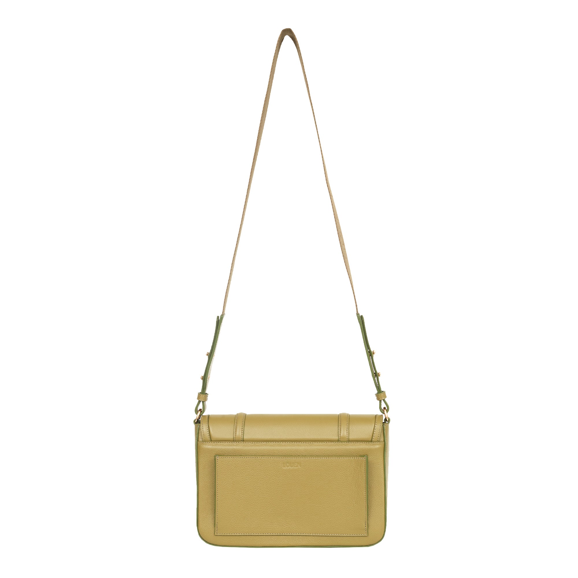 Comporta com elegância seus itens essenciais: celular, pequena nécessaire, bloco de anotações, caneta, chaves, batom, cartões e dinheiro. A marca Louen está gravada discretamente na parte traseira da bolsa, reforçando a autenticidade da peça.