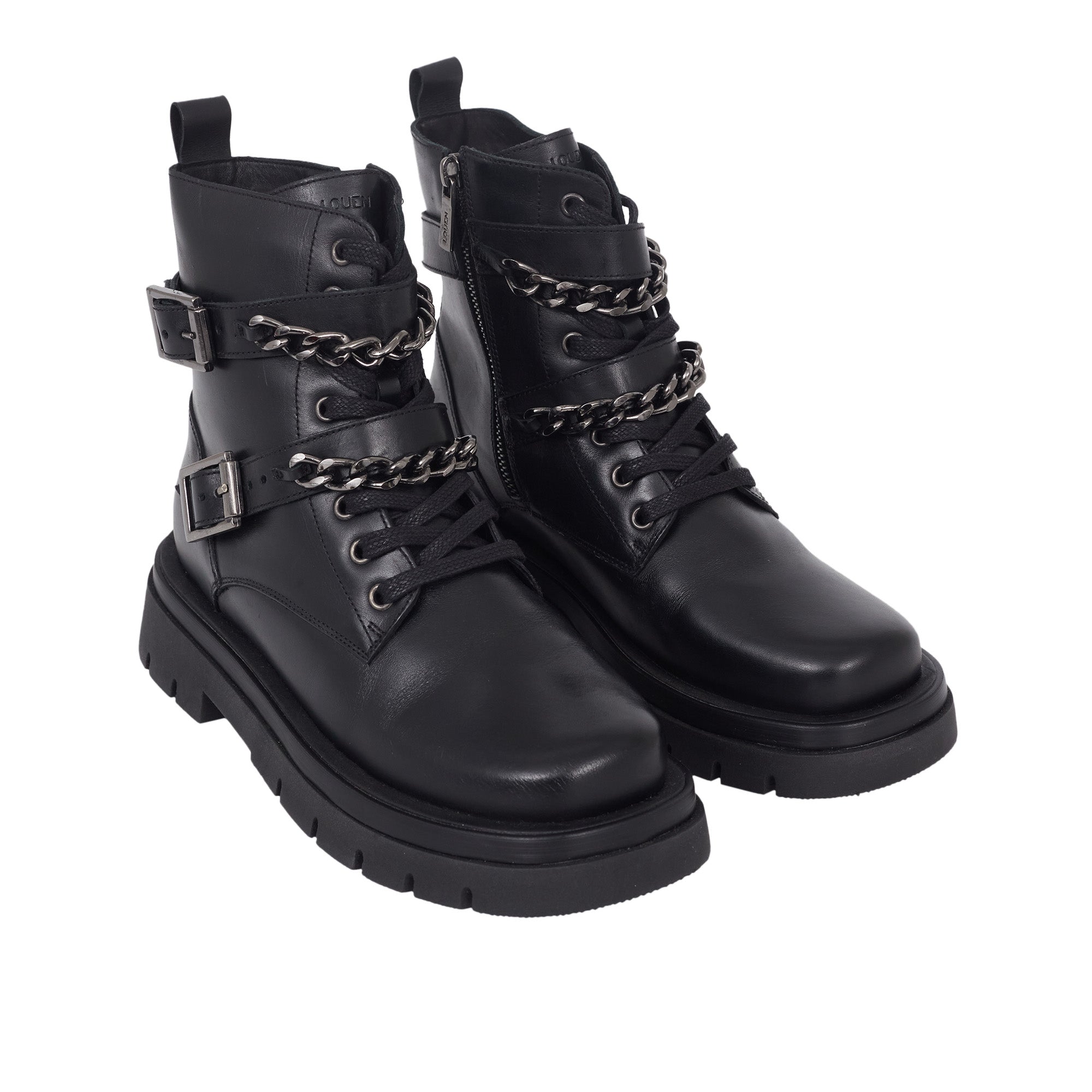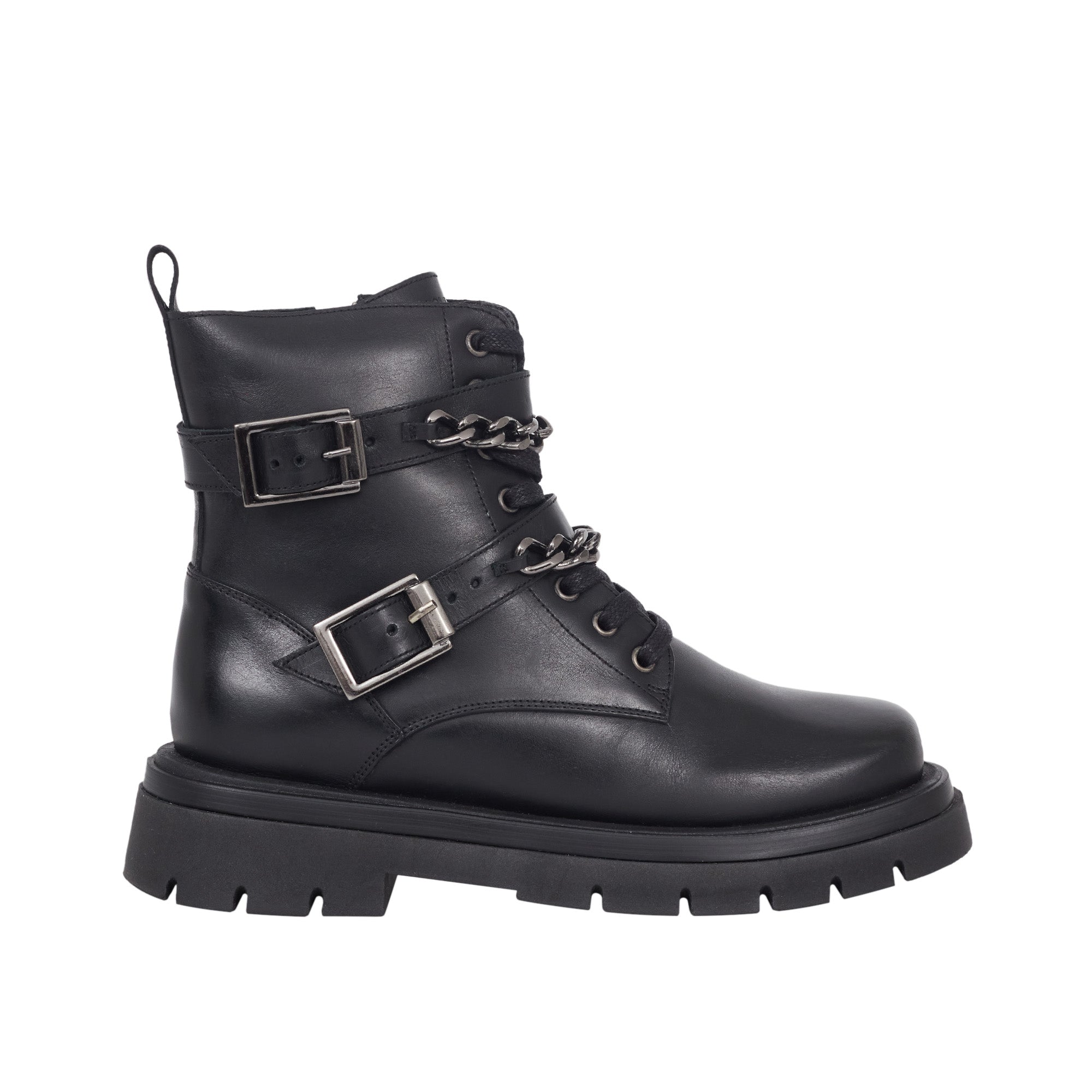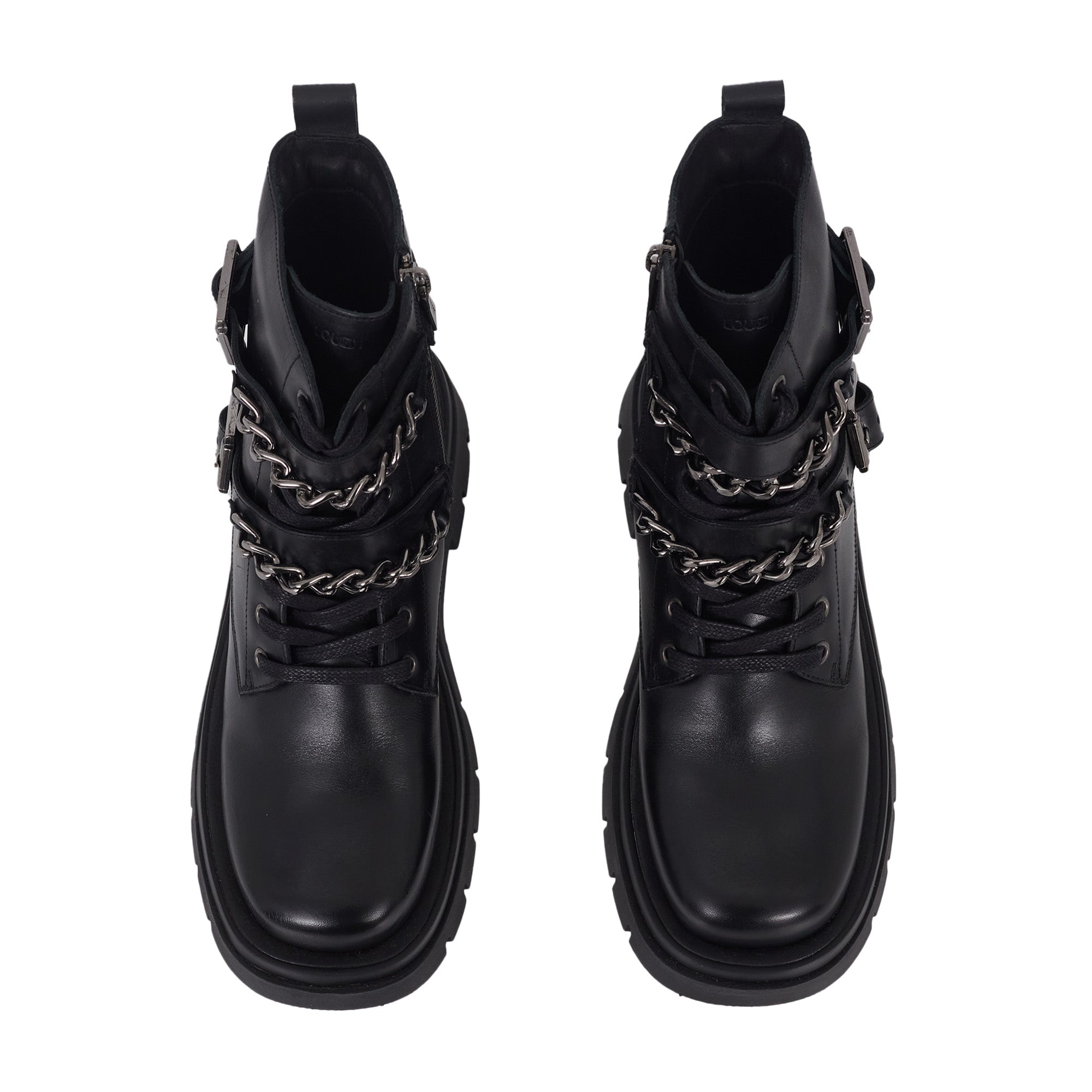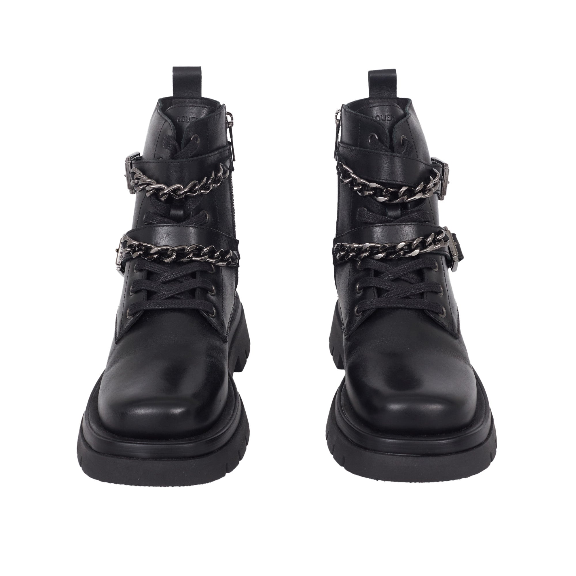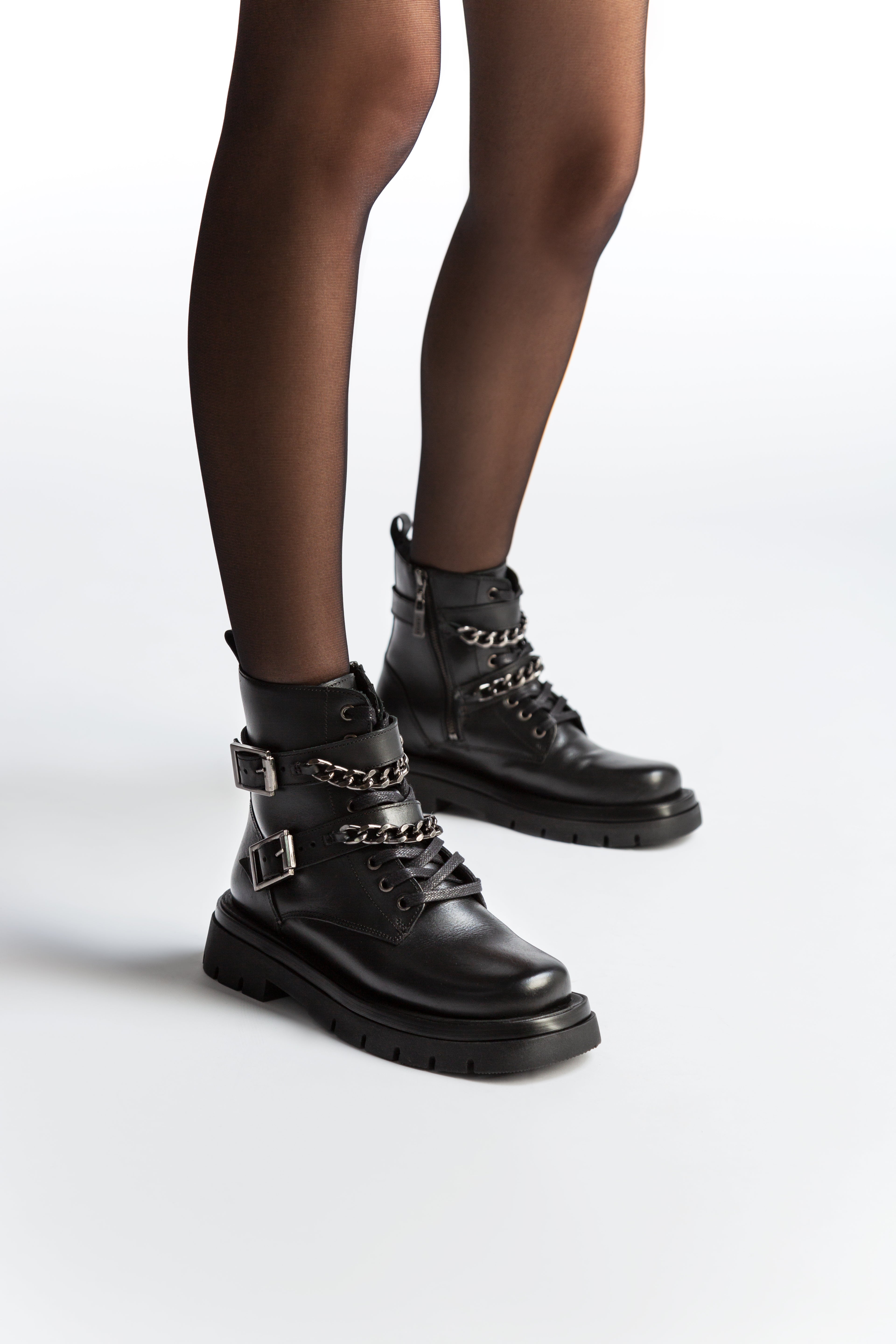 O coturno Astrid, tem design robusto e imponente, equilibrado por acabamentos minuciosos que traduzem a elegância discreta da Louen. Confeccionada em couro premium com acabamento levemente fosco, a Astrid se destaca pelos detalhes metálicos em ônix envelhecido: fivelas duplas, corrente frontal e puxador exclusivo Louen - símbolo de autenticidade e cuidado com cada detalhe. Sua sola tratorada em proporção generosa oferece estabilidade e marca forte presença, ideal para enfrentar o dia a dia com segurança e muito estilo. Seu fechamento com cadarço e zíper lateral garante ajuste perfeito e praticidade.