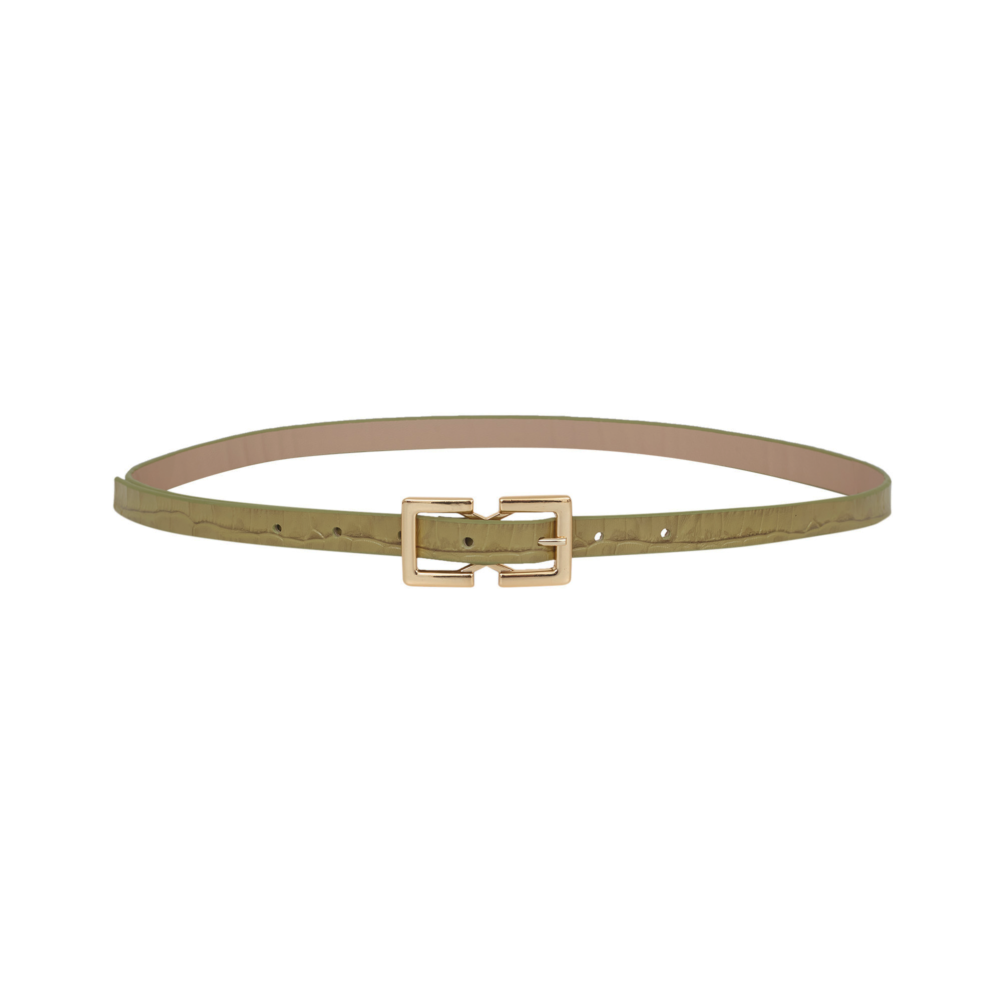 Emily - Cinto feminino - Couro estampa Croco Verde Oliva