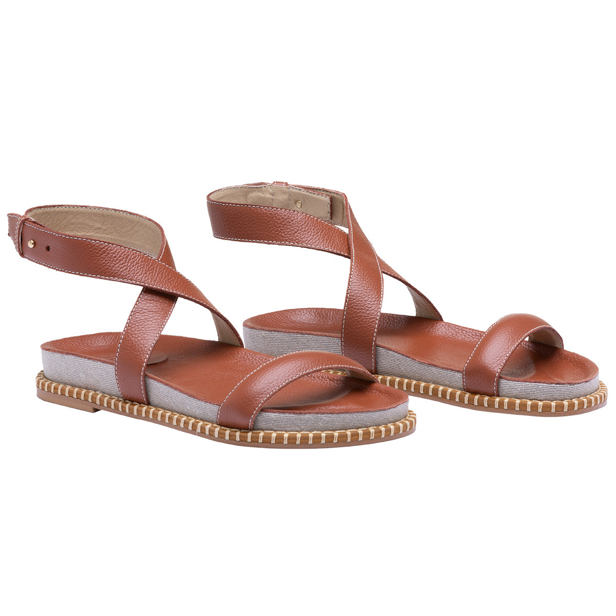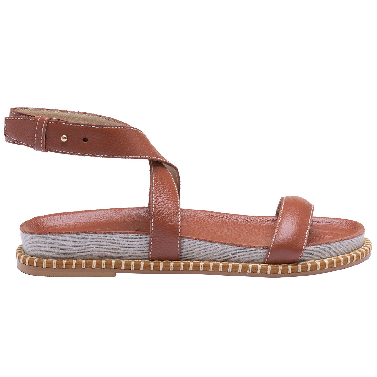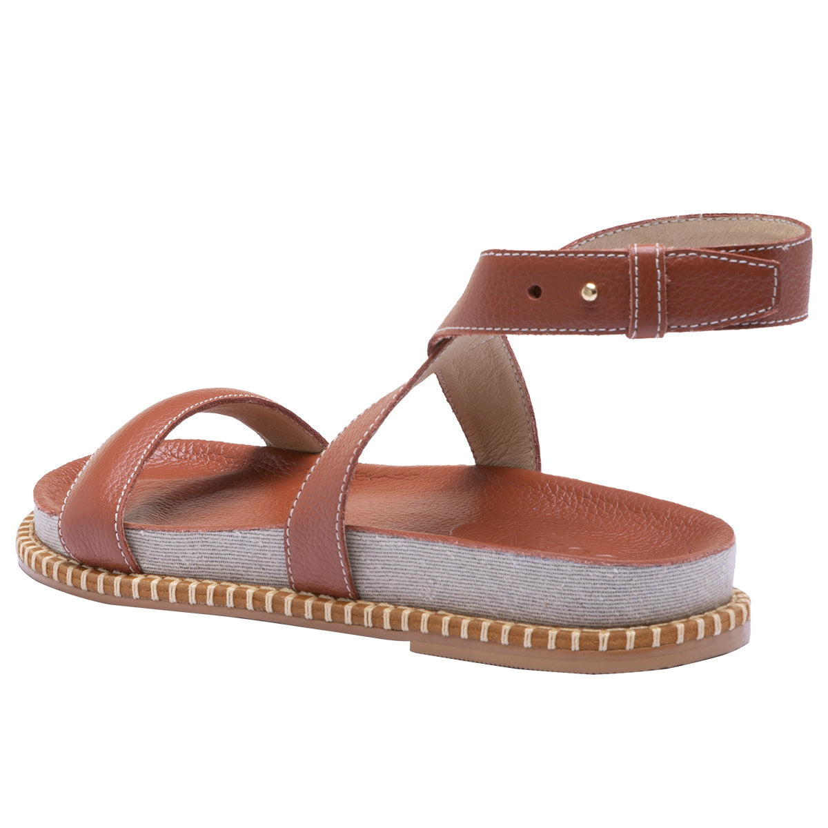 Marin - Rasteira - Papete - Couro Whisky com linho natural
