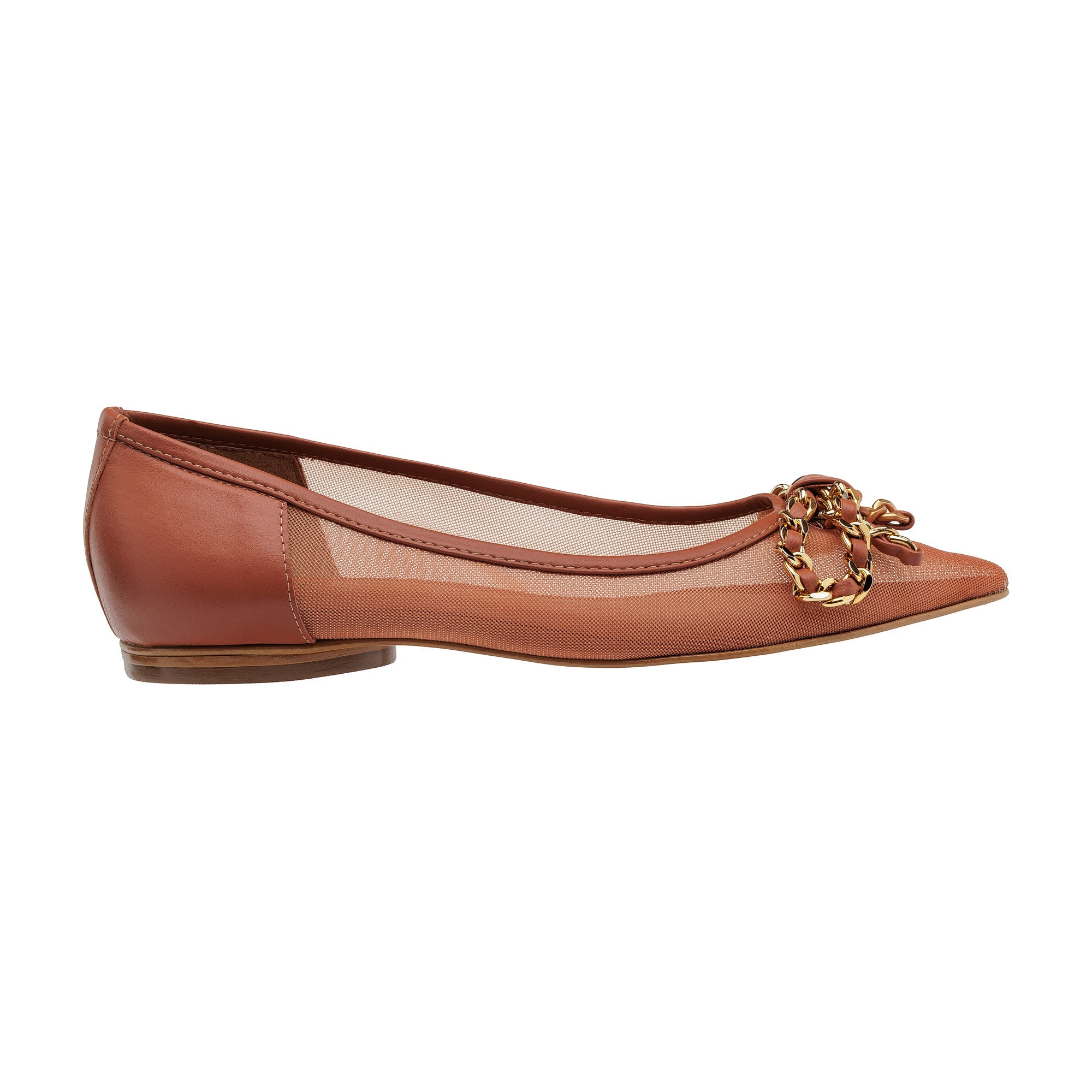 Luna combina cabedal em tela com transparência e couro macio no mesmo tom, resultando em uma sapatilha delicada e elegante, perfeita para quem adora uma peça super especial.